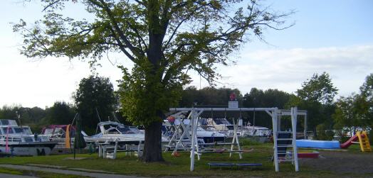 2004/2005 entstand in zwei Bauabschnitten die Steganlage mit 15 Bootsliegeplätzen für die Sommermonate - klein aber fein. Denn die Merkmale sind breite und lange Seitenstege für ein jedes Boot, Beleuchtung auf allen Stegen, Landanschlußsteckdosen für jedes Boot und Zapfstellen für Trinkwasser.